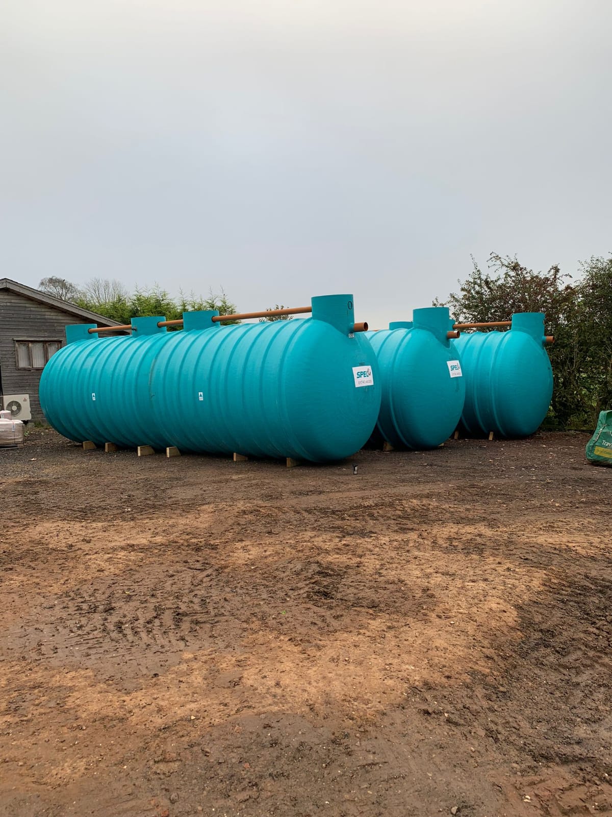 - Comprising: SPEL 400 Series 40,600 litre Septic/Settlement tank plus 2no. SPEL Tankstor 45,500 litre tanks fitted with various sewage treatment plant treatment stages.